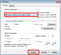 Selezionare [Canon Desktop Document Writer] come stampante da utilizzare e fare clic su [Stampa].