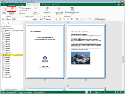 Layout delle pagine (selezione delle impostazioni per capitolo)