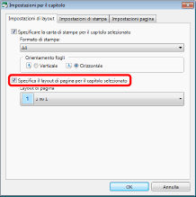 Selezionare la casella di controllo [Specifica il layout di pagina per il capitolo selezionato].