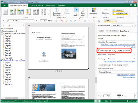 Nella scheda [Imp. Pagina] nella Finestra Dettagli, selezionare la casella di controllo [Inserisci int./piè di pag. su pag. di stampa].