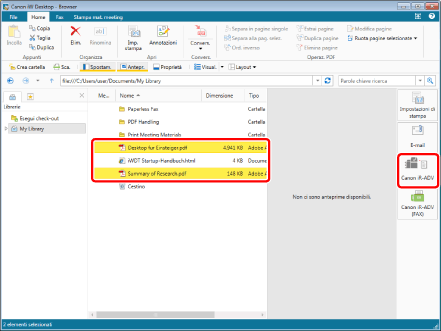 Selezionare un documento da stampare e fare clic sul pulsante output stampante.