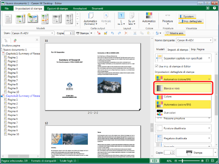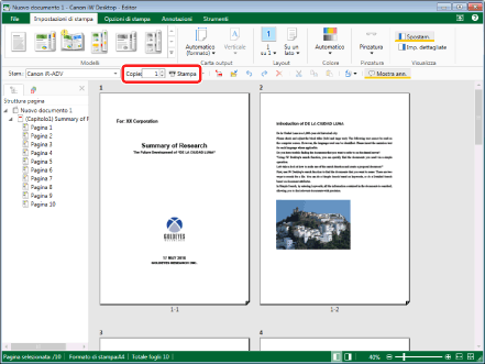 Desktop Editor consente di stampare documenti. [Stampa] è utile per stampare una copia di tutte le pagine.