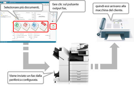 Selezionare i documenti da inviare e fare clic sul pulsante output fax.