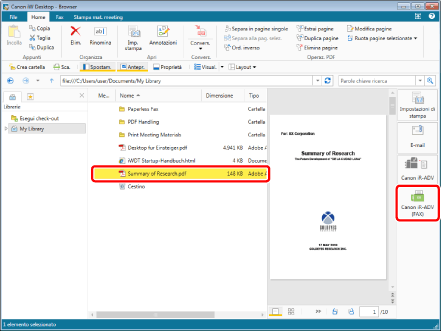 In Desktop è possibile inviare un fax selezionando un documento e facendo clic sul pulsante output fax o trascinando il documento sul pulsante output fax. È inoltre possibile inviare fax da Quick Printing Tool e Desktop Editor.
