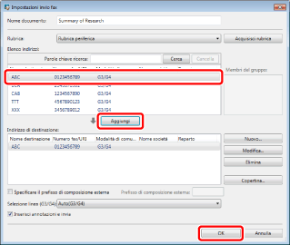 Selezionare la destinazione in [Elenco indirizzi] e fare clic su [Aggiungi] > [OK].