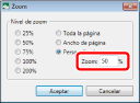 Puede ajustar el factor de ampliación de la Ventana de trabajo moviendo el control deslizante del a barra de estado hacia la derecha o la izquierda, o haciendo clic en