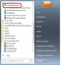 Para Windows 10, seleccione el menú [Inicio] > [Canon iW Desktop] > [iW Desktop Editor]. Se iniciará Desktop Editor.