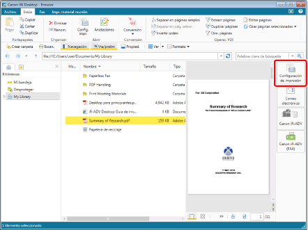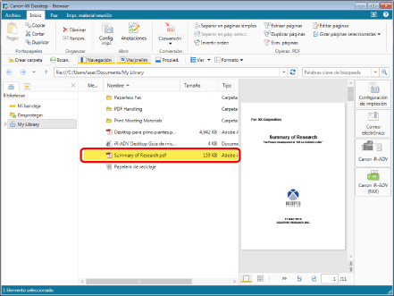 Si se selecciona la casilla de verificación [Guardar el documento original en Canon Desktop Document] en [Configuración del sistema], el documento original se guarda en el documento IWB.
