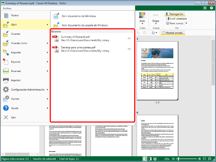 Puede abrir un máximo de 10 documentos con Desktop Editor haciendo clic en [Abrir] o [Anotaciones].
