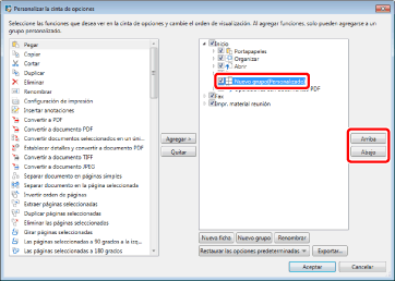 Para cambiar el orden de visualización de los grupos, seleccione el grupo del que quiera cambiar el orden de visualización en la lista de la derecha y haga clic en [Arriba]/[Abajo].