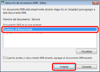 Si hace clic en [Actualizar] en [Selección de documento IWB - Editor], se actualizará la lista de los documentos abiertos en Desktop Editor.