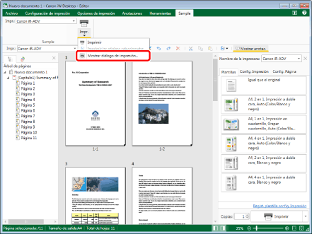 A continuación encontrará más información sobre cómo imprimir documentos desde Desktop Editor sin configurar las opciones detalladas mediante un cuadro de diálogo.