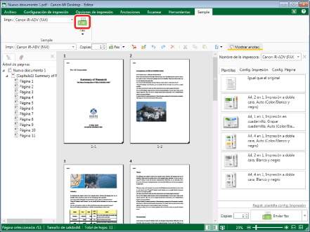 Para obtener información sobre cómo enviar por fax las páginas seleccionadas en la Ventana de navegación o en la Ventana de trabajo de Desktop Editor, consulte: