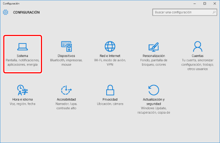 Para Windows 8.1, seleccione [Configuración] > [Panel de control] en los Botones de acceso.