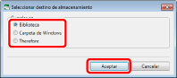 Seleccione el destino donde se guardará y haga clic en [Aceptar].