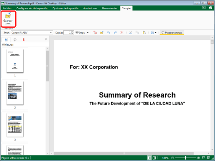 En esta sección se describe cómo guardar un documento como documento PDF con un nombre.