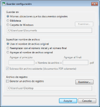 Le permite especificar el destino donde se guardarán los documentos PDF.