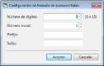 Especifique el número de dígitos del número Bates. Puede especificar de 3 a 15 dígitos.