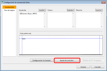 Un número que supere la cantidad de dígitos especificada en [Número de dígitos] no se podrá establecer en [Número inicial]. No obstante, se establecerá un número que supere el número de dígitos especificado si el número de dígitos se supera durante el proceso de adición del número Bates.