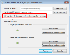 Si las operaciones de Desktop se vuelven inestables porque se registra un gran número de documentos en una Biblioteca de red, anule la selección para solucionar el problema. La velocidad de operación también puede mejorar porque la carga del ordenador es menor en comparación a cuando está seleccionada la opción. |