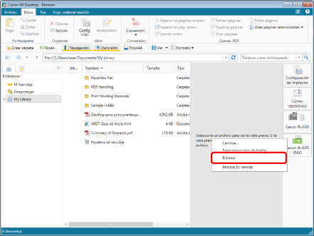 Haga clic con el botón derecho del ratón en el botón de salida de [Fax] que desee eliminar, y seleccione [Eliminar].