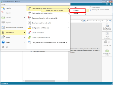 El botón personal registrado se elimina de Desktop Browser, pero el botón del menú rápido del dispositivo imageRUNNER ADVANCE no se elimina.