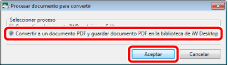 [Convertir a un documento PDF y guardar documento PDF en la biblioteca de iW Desktop]