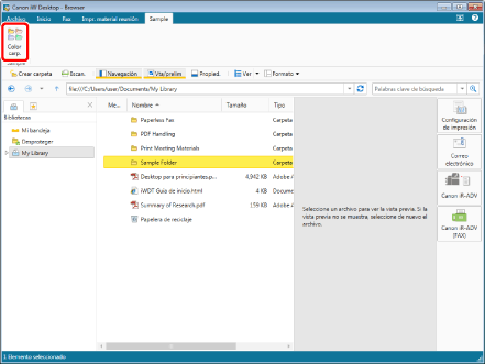 No puede cambiar el color de visualización de las carpetas para una Biblioteca de Document Server o una Biblioteca de SharePoint Server si no tiene permiso de edición o un permiso superior.