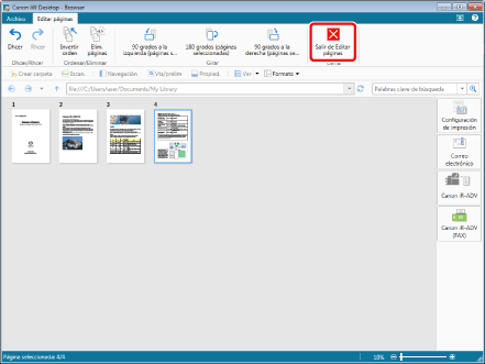 Para seleccionar varias páginas, haga clic sobre ellas mientras mantiene pulsada la tecla [Mayús] o [Ctrl] en el teclado.