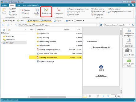 Si abre un documento en una Biblioteca de Document Server, aparecerá un mensaje para confirmar si se desea proteger o desproteger. En ese caso, haga clic en [Sí]. El mensaje que aparece al desproteger también puede ocultarse. Para obtener más información, consulte: