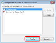 Se conservarán los valores establecidos en la [Configuración detallada para documento PDF] para la próxima ocasión.