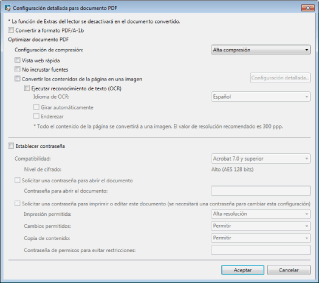 Si especifica ajustes detallados y convierte un documento PDF con Reader Extensions en un documento PDF, la función Reader Extensions se suprime.