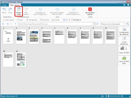 Si invierte el orden de las páginas de un documento PDF con un atributo como "Solo lectura" (Windows), el atributo quedará invalidado en el documento PDF tras invertir el orden de las páginas.