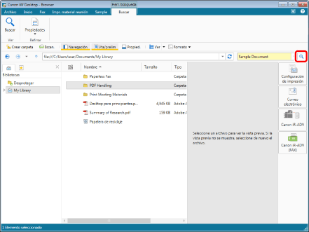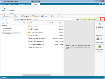 Puede previsualizar los documentos encontrados en la búsqueda en la Pantalla de búsqueda. Para obtener más información, consulte:
