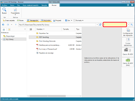 Si no se selecciona ninguna biblioteca o carpeta en la Ventana de navegación