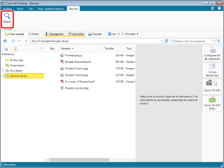 Puede previsualizar los documentos encontrados en la búsqueda en la Pantalla de búsqueda. Para obtener más información, consulte: