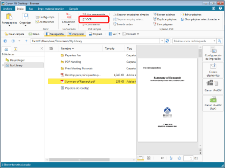 Seleccione el idioma de la función OCR en la lista desplegable.
