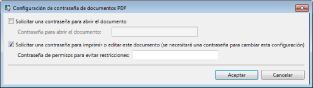 Seleccione esta casilla para restringir la impresión, la edición y la copia de documentos PDF.