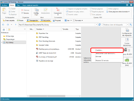 Si cambia el nombre de la impresora registrada en un botón de salida de [Impresora] en la pantalla de propiedades de la impresora de Windows, no se mostrará el estado en el botón de salida de [Impresora]. Si cambia el nombre de la impresora, reinicie Desktop Browser y seleccione de nuevo la impresora en los ajustes del botón de salida de [Impresora].