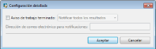 Para recibir una notificación por correo electrónico, seleccione esta casilla de verificación cuando finalice el envío en el estado de la lista desplegable.