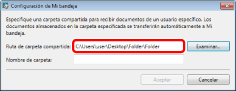 * Tenga en cuenta que si la carpeta se configura como compartida, puede especificarla como carpeta para recibir por la red.