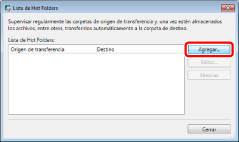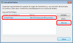Incluso si elimina los ajustes de la Hot Folders aplicando los pasos mencionados arriba, no se borrará la Carpeta de Windows que se ha especificado como carpeta de origen.
