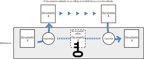 Normalmente, un usuario desprotege un documento en una librería para actualizarlo, y después descarga el documento desprotegido para realizar la operación de edición. Estos procedimientos evitan que otros usuarios realicen otra operación de edición en el mismo documento mientras el usuario original los está editando. Otros usuarios pueden editar el documento sólo después de que el documento sea protegido o se haya cancelado la desprotección.
