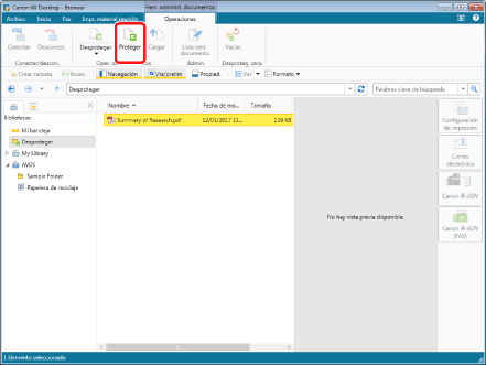 El documento se desprotege en la biblioteca y el icono de protección desaparece.