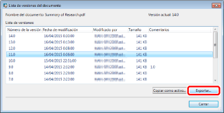 La [Lista de versiones del documento] no se puede mostrar para varios documentos.