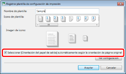 El número de plantillas registradas se puede comprobar en [Administrar plantillas de configuración de impresión]. A continuación encontrará más información sobre [Administrar plantillas de configuración de impresión]. |