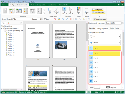 Si se ha seleccionado [Auto (Tamaño)] en los ajustes de tamaño del papel de salida, el diseño de página cambia a [1 en 1].