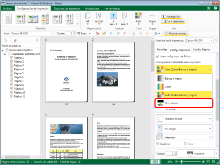 Si se ha seleccionado el modo de dos colores, no puede especificar los ajustes del modo de color para capítulos o páginas específicas.