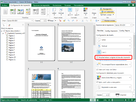 La configuración de aumento/reducción se prioriza en el siguiente orden: página > capítulo > documento.