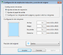 Si no desea configurar el ajuste de aumento/reducción, desmarque la casilla de verificación [Ampliar/reducir original al área de impresión].